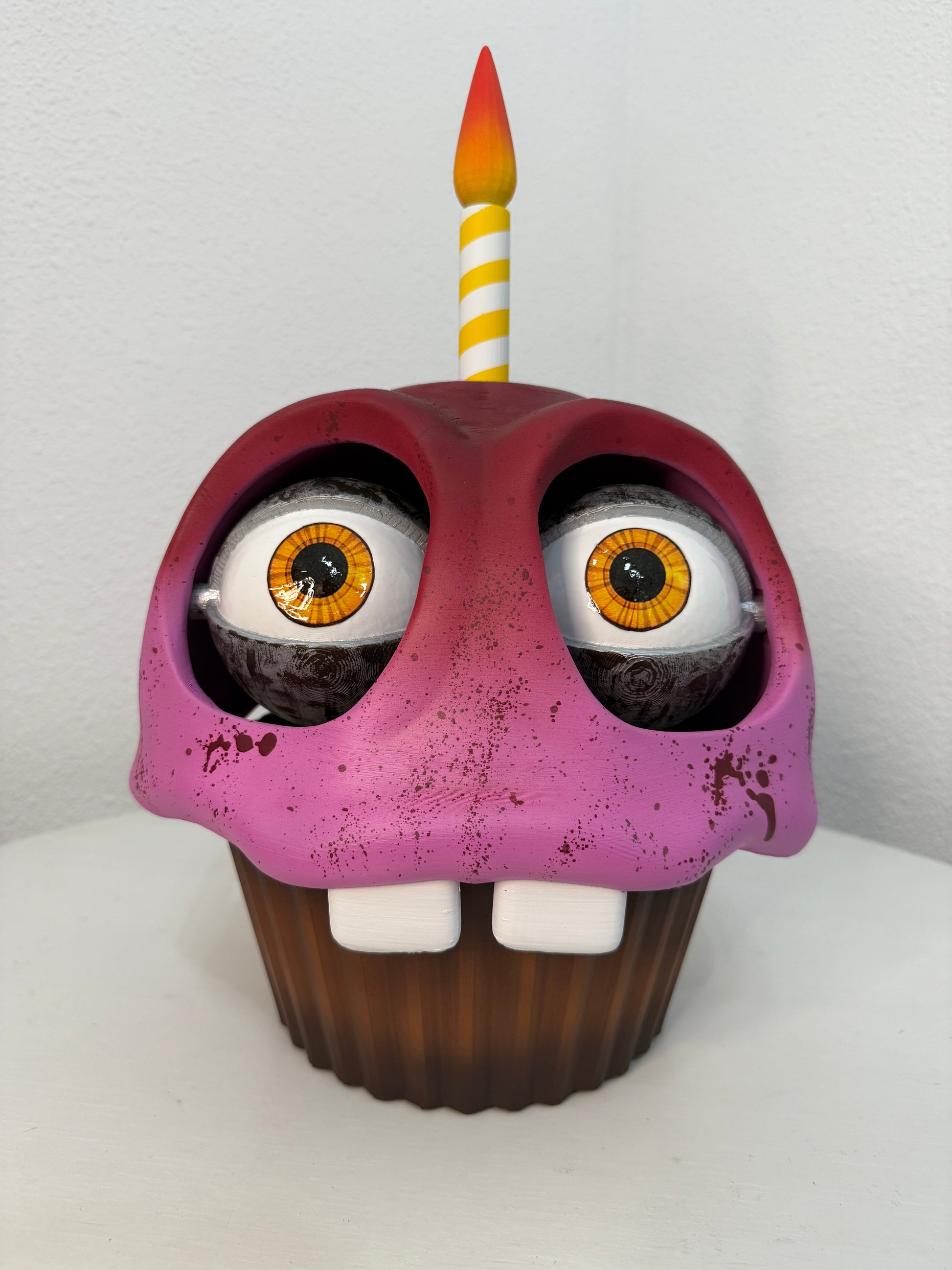 Preciosa figura de Carl, el cupcake de Five Nights at Freddy´s impresa en 3D y pintada a mano. Mide 39 cm en total como se puede ver en la foto. Es una pieza unica para coleccionistas.